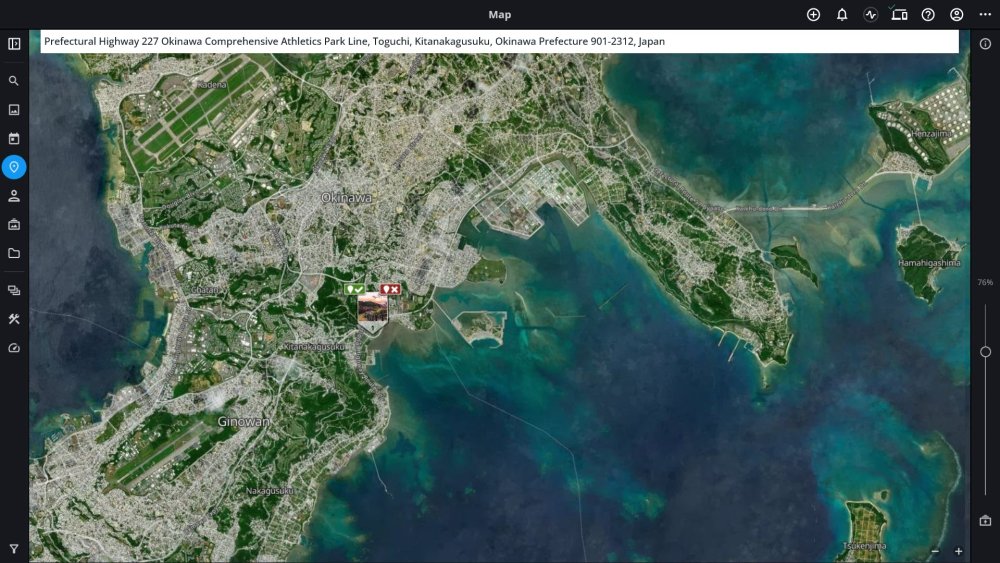 - Wenn die ausgewählten Bilder keine Ortsangaben haben, können Sie Ihre Auswahl per Drag & Drop auf die Karte ziehen. Verfeinern Sie die Platzierung durch Klicken und Ziehen der Stecknadel. Wenn Sie mit der Platzierung zufrieden sind, klicken Sie auf das grüne Häkchen