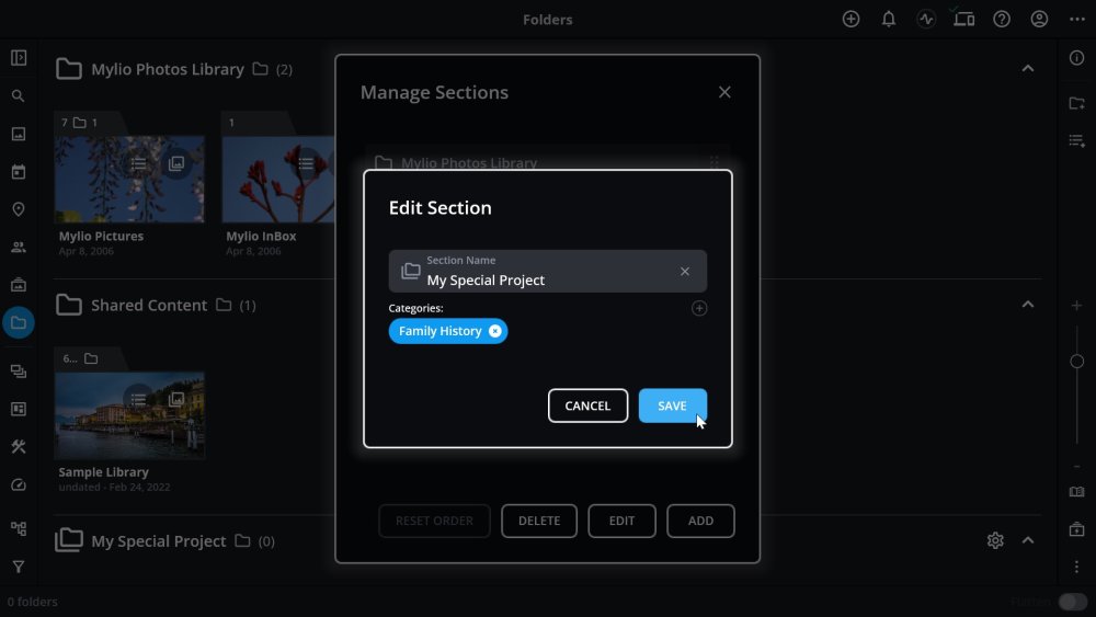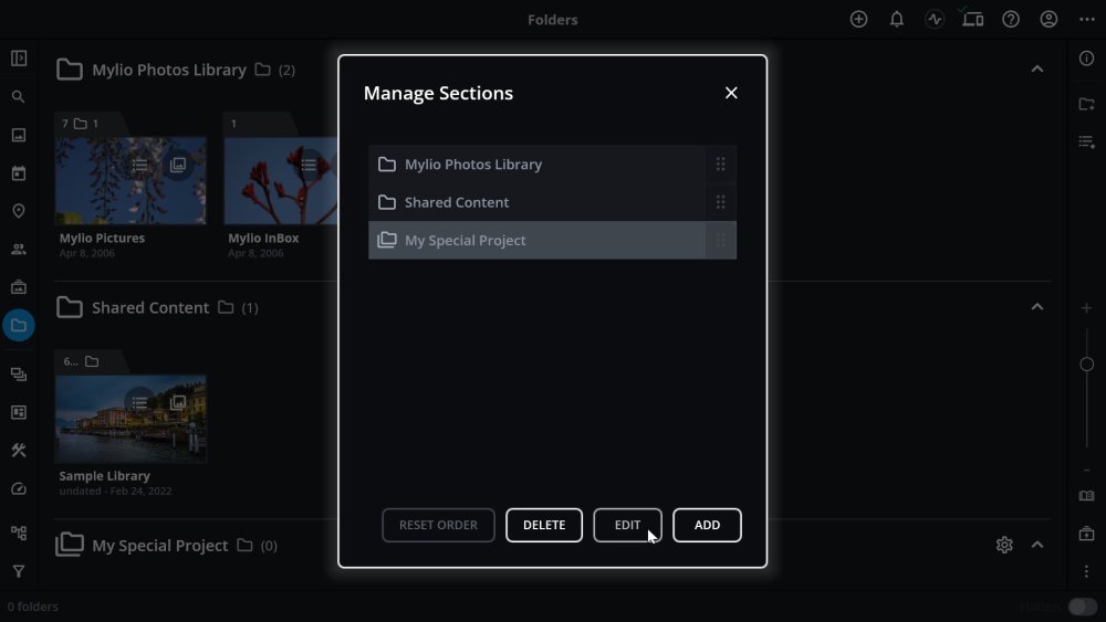Sections in the Folders View help you group related folders together for easier navigation and visual organization. Whether you’re managing a large project, separating personal and professional media, or organizing by family members, custom sections let you tailor the layout to match your needs.