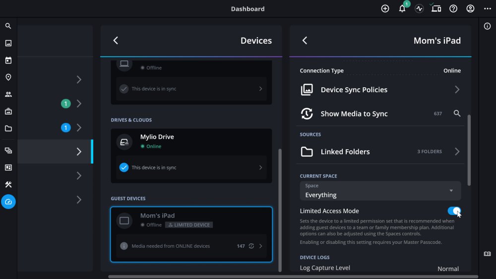 When you add a guest device to your Mylio Account, managing what the guest can see and do is simple. This includes automatically creating a custom Space and media Category using the guest’s name, giving you complete control over their experience while keeping your library organized.