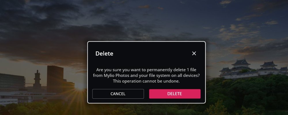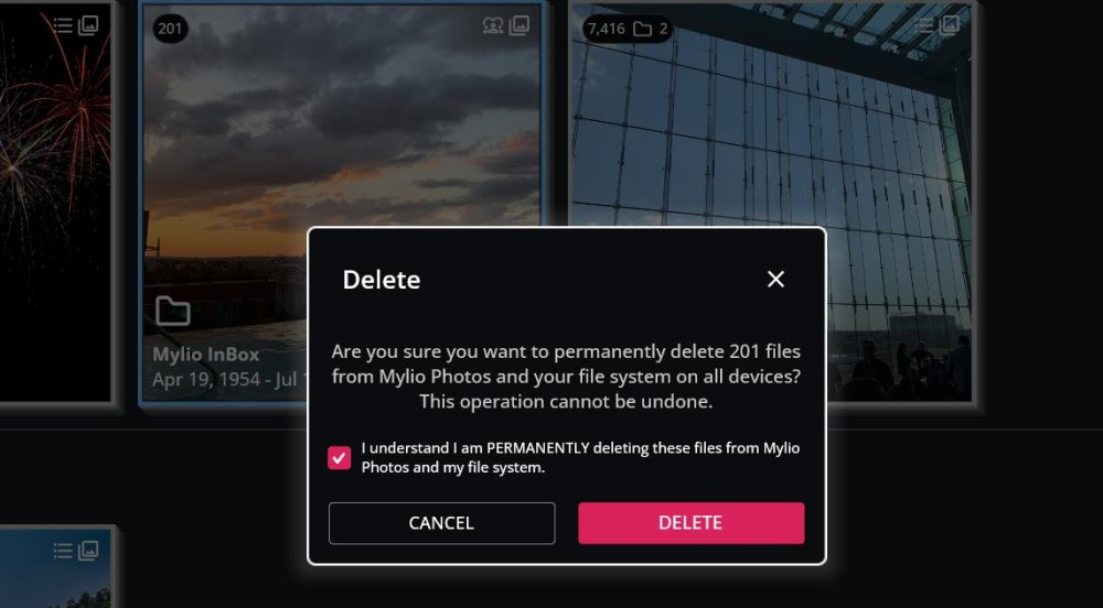 Wenn Sie einen Ordner in Mylio Photos löschen, werden der Ordner und sein Inhalt aus Ihrer Mylio Photos Bibliothek, dem Dateisystem des Computers und allen Mylio Photos+ Geräten, einschließlich aller Vaults, entfernt.