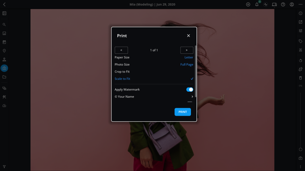 Das Drucken Ihrer Bilder direkt aus Mylio Photos ist einfach und kann von einem Computer oder einem mobilen Gerät aus erfolgen.