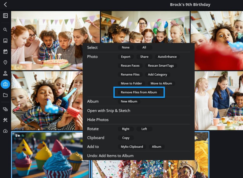 *Das Entfernen von Medien aus einem Album entfernt sie aus dieser Sammlung, löscht sie aber nicht aus Ihrer Mylio Photos Bibliothek.