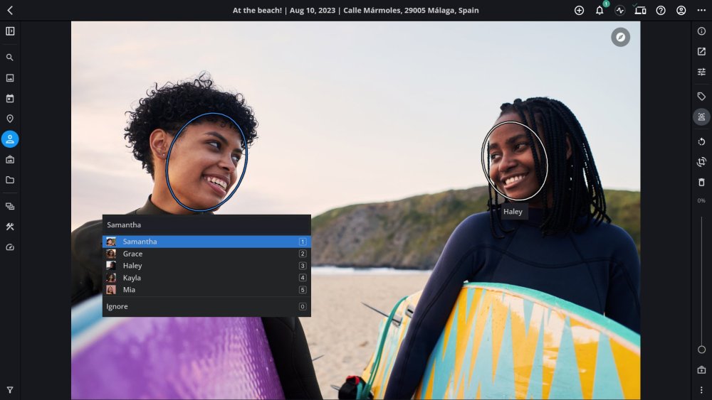 - Wenn ein Gesicht mit einem falschen Namen gekennzeichnet ist, klicken oder tippen Sie auf das Gesicht, suchen Sie den richtigen Namen in der Liste oder geben Sie einen neuen Namen ein.