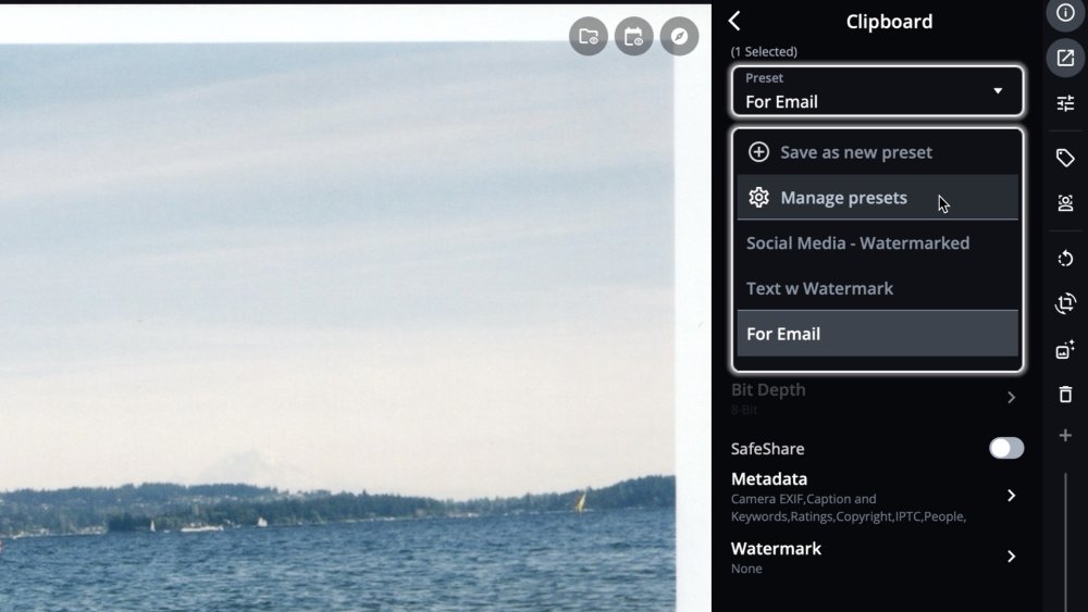 In addition to the ready-made options, Mylio Photos allows you to create and manage custom export presets tailored to your specific needs. This section will guide you through the available presets and show you how to create, modify, and manage custom export presets for a more personalized export and sharing experience.