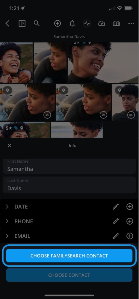 - Tap the Choose FamilySearch Contact button.