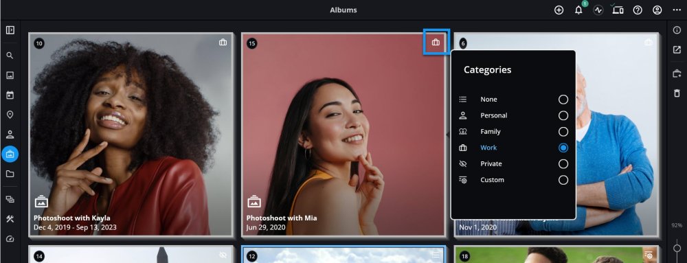 - Wählen Sie Keine, Persönlich, Familie, Arbeit, Privat oder Benutzerdefiniert, um eine primäre Kategorie für das ausgewählte Album zuzuweisen.