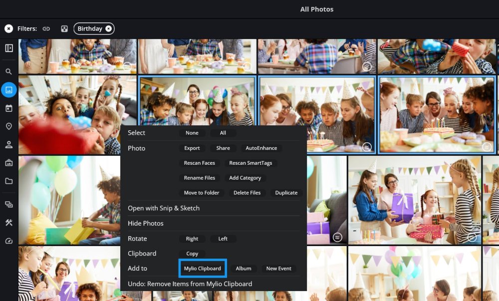 Die Mylio-Zwischenablage ist ein praktisches Werkzeug, mit dem Sie Fotos vorübergehend speichern können, wenn Sie sie zwischen Ordnern verschieben oder zu Alben hinzufügen.