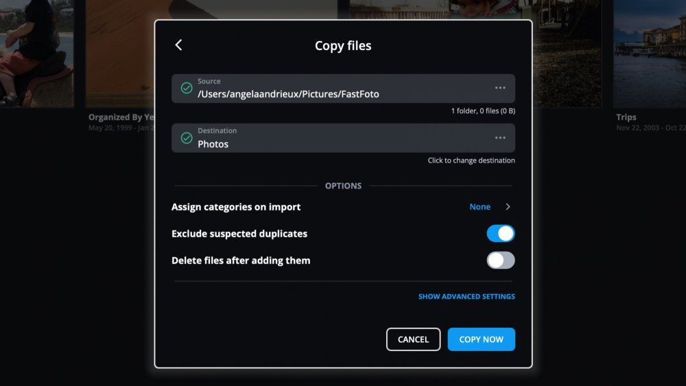- Click Copy Now to begin copying your folder into your Mylio Photos Library.