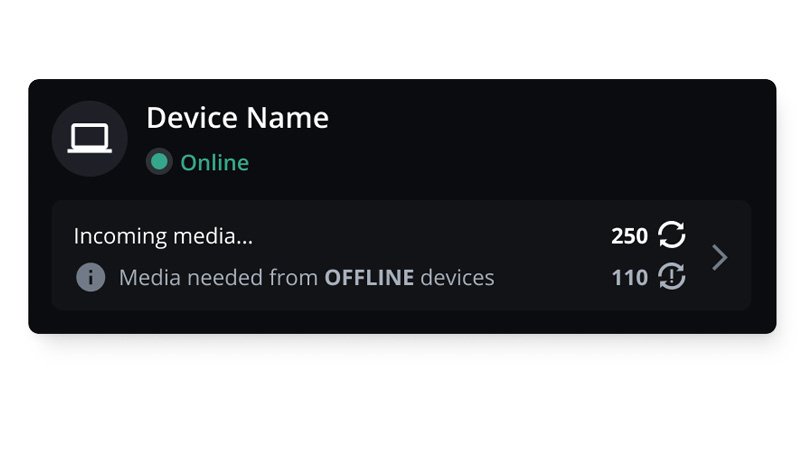This device needs media from other devices, and some of that media is on devices that are currently offline. Click the arrow