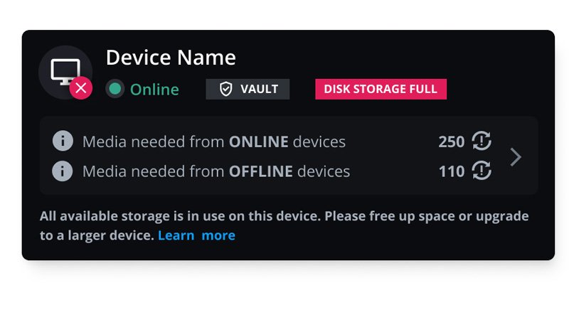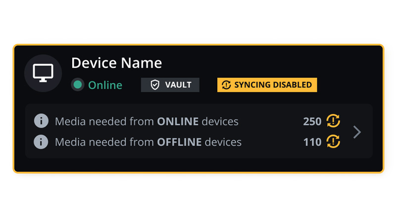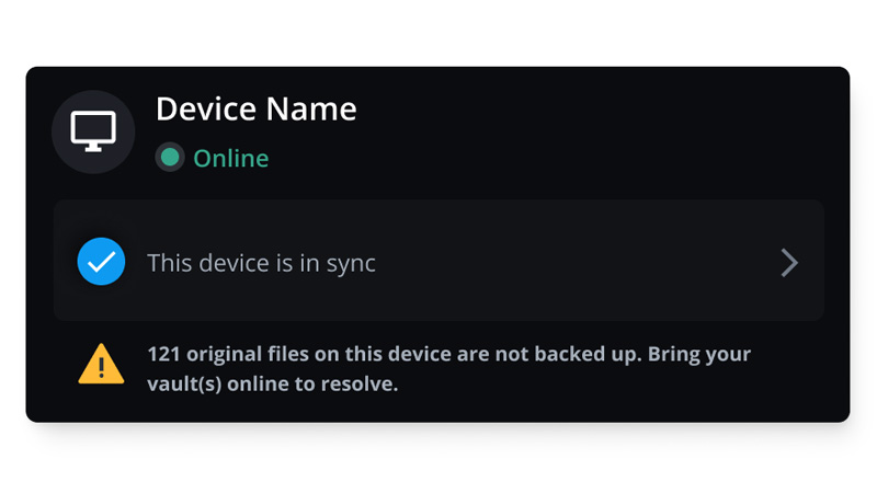 This device is online, in sync, but has media that has not yet been backed up to all Vault devices because one or more Vaults is offline.