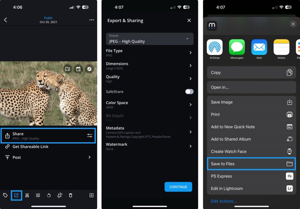 - On iOS devices, choose Save to Files to store your photos in the Files app.
