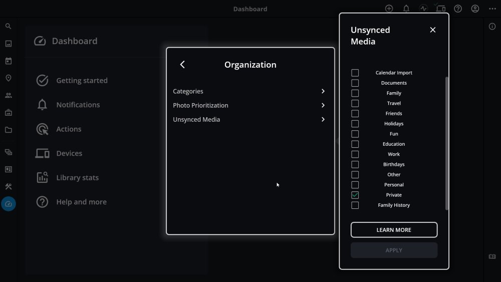 - Add additional categories that should be applied automatically to new, unsynced media.
