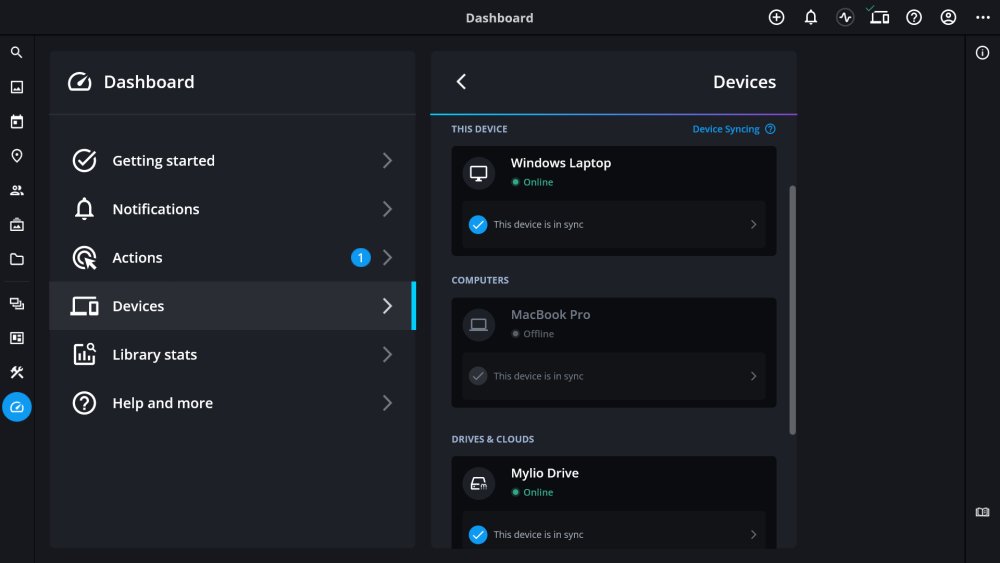 Mylio Photos+ makes it simple to access your media on all your devices. The sync process ensures that your devices always have the same information about the media in your library. Each time new photo and video files are added to one device, they become available on all your other devices through syncing. Syncing also ensures the organization and editing work you do on one device is available on all other devices connected to your Mylio account.