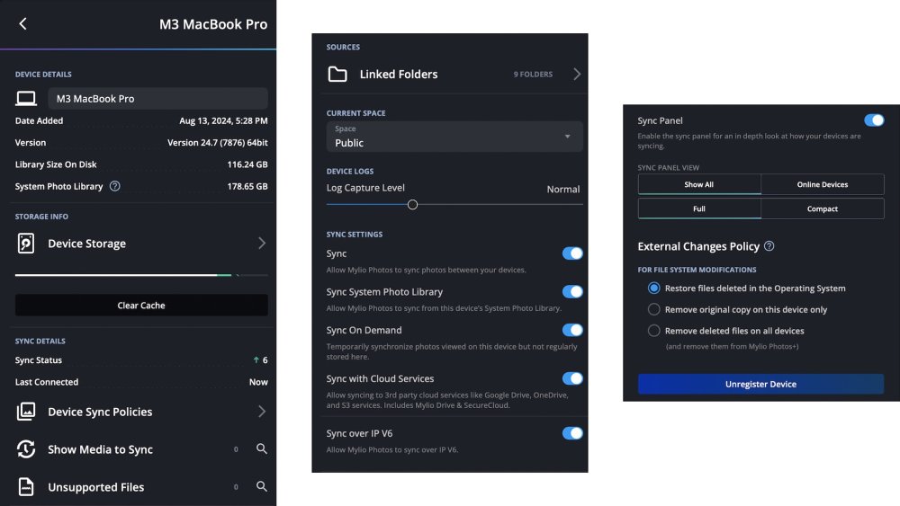 Clicking Unregister Device will completely remove the device from Mylio Photos+ and your Mylio Account. Do not choose this option unless you are sure.