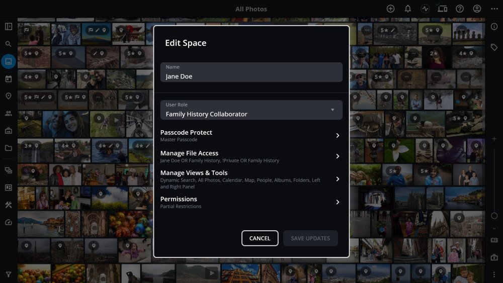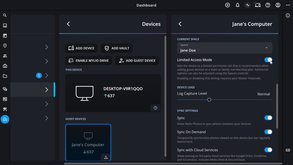 When you add a guest device to your Mylio Account, managing what the guest can see and do is simple. This includes automatically creating a custom Space and media Category using the guest’s name, giving you complete control over their experience while keeping your library organized.
