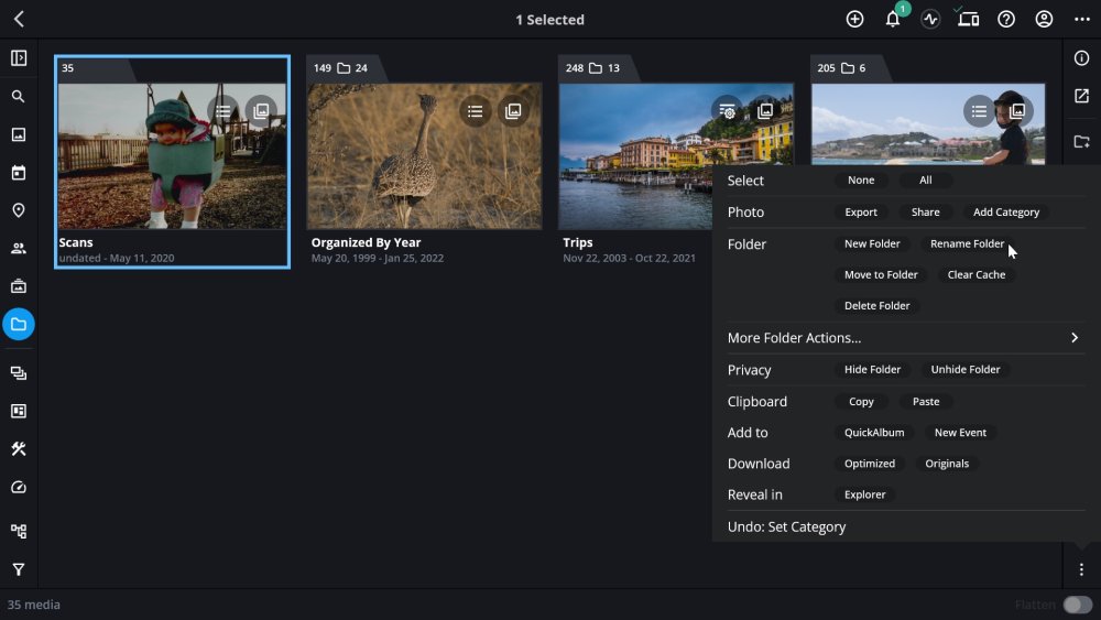 Giving your folders clear, descriptive names makes it easier to manage and navigate your Mylio Photos Library. You can rename any folder directly from the Info Panel or through the Actions Menu, depending on your preference.