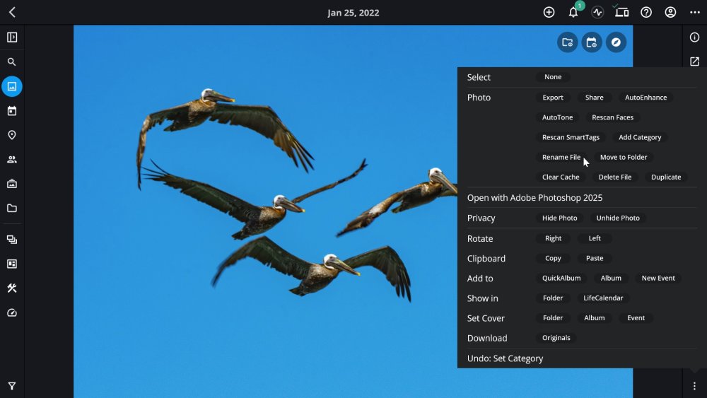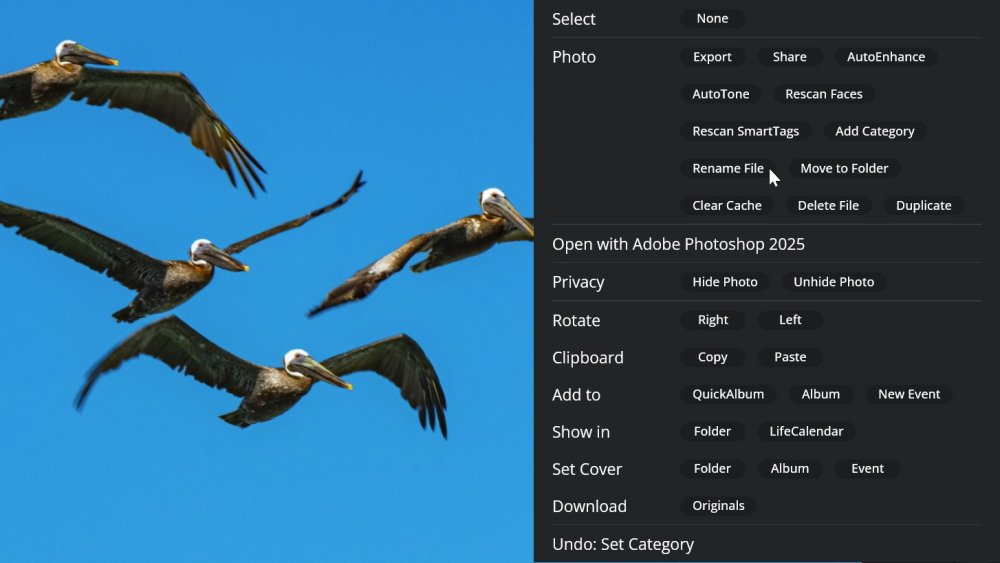 Mylio Photos offers two easy ways to rename individual files—either directly from the Info Panel or through the Actions menu. Both methods are useful for giving your files more descriptive, searchable names as you organize your library.