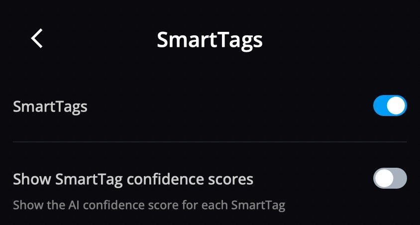 - Show SmartTag confidence scores – Show or hide the AI confidence score for each SmartTag.