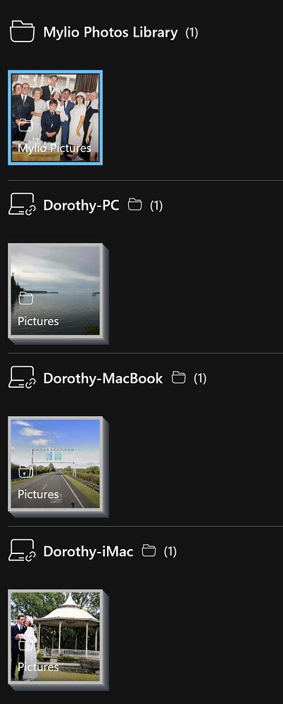 - Linked Folders will be associated with the device you used to link the folder in the Mylio Photos Folders view.