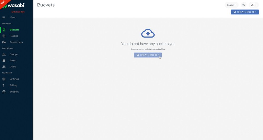 - Under Data Access, choose Buckets, then click the button to Create Bucket.