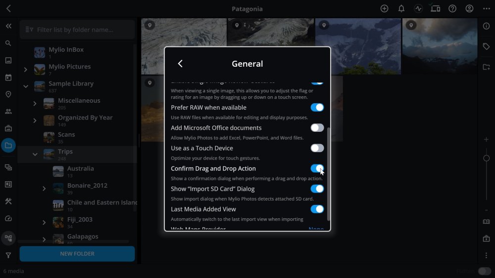 When enabled, Mylio Photos will ask you to confirm any drag-and-drop move before it is completed.