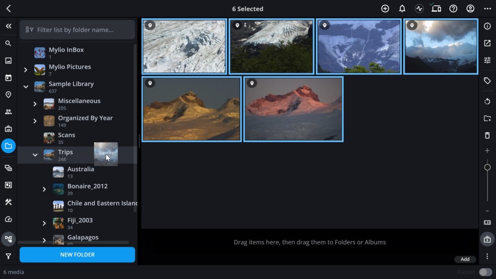 Mylio Photos allows you to quickly organize your files and folders using drag and drop – a simple, visual way to arrange your media and keep your library easy to navigate.