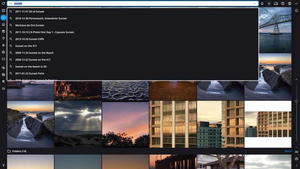- As you begin to type, Mylio Photos will auto-complete possible matching search terms from AI SmartTags, Folders, People, and Albums. Navigate using the arrow keys(