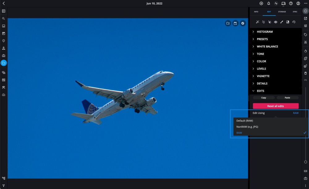By default, Mylio Photos displays the RAW version. You can change the default behavior at any time.