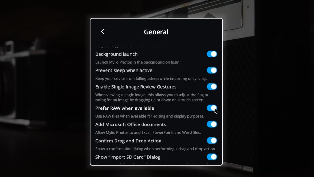 - Prefer RAW when available ON → Mylio edits the RAW file.