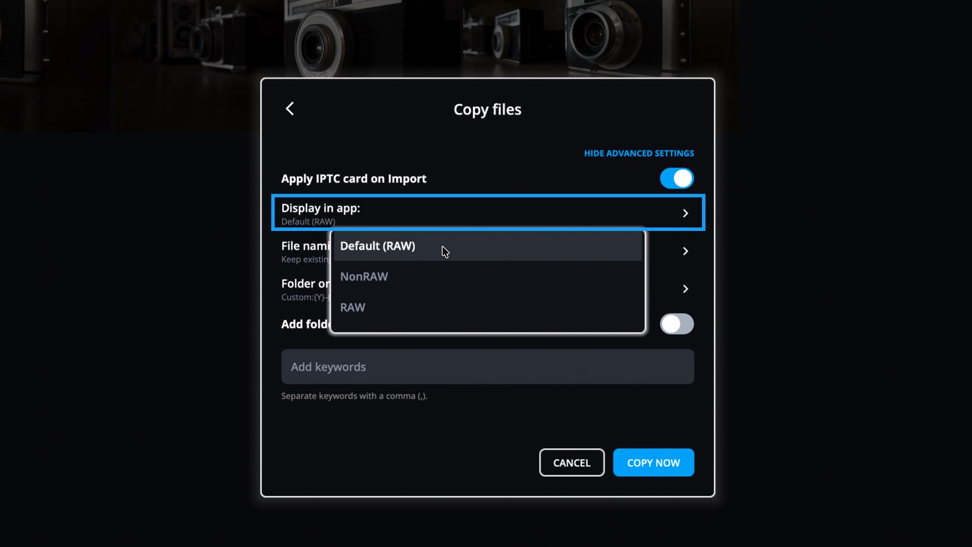 When using Copy or Move import options, you can control which version Mylio displays in the app: